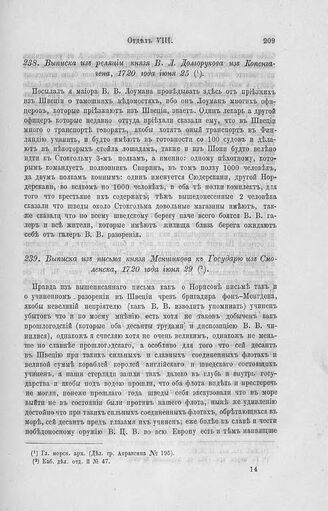 Выписка из письма князя Меншикова к Государю из Смоленска, 1720 года июня 29 // Каб. дел. отд. II № 47.
