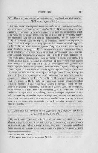 Выписка из письма Бестужева к Государю из Копенгагена, 1721 года апреля 15 // Каб. дел. отд. II № 54.