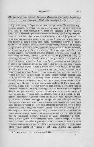 Выписка из письма Артемия Волынского к графу Апраксину из Шемахи, 1716 года октября 9 // Гл. морск. арх. (Дел. гр. Апраксина № 142).