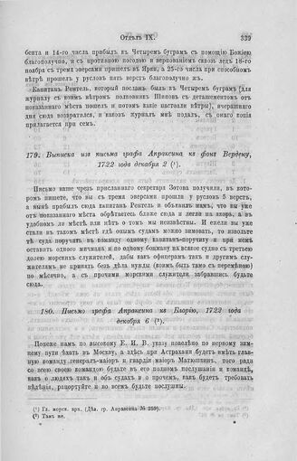 Выписка из письма графа Апраксина к фон Вердену, 1722 года декабря 2 // Гл. морск. арх. (Дел. гр. Апраксина № 259).