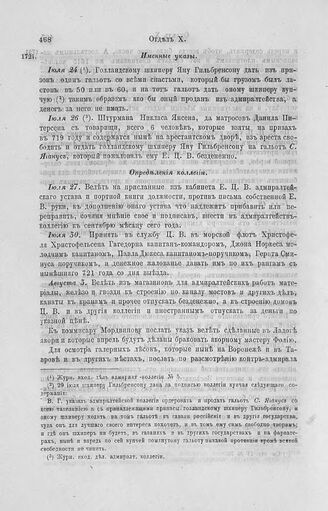 Именные указы. Июль 1721 год // Гл. морск. арх. Журн. вход. дел адмиралт. коллегии № 5.