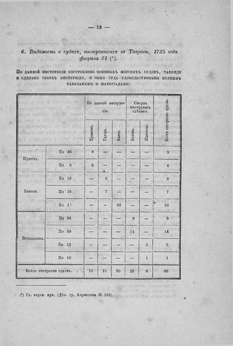 Ведомость о судах, построенных в Таврове, 1725 года февраля 21 // Гл. морск. арх. (Дел. гр. Апраксина № 233).