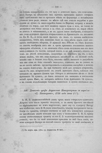 Донесение графа Апраксина Императрице с корабля «С. Екатерина», 1726 года июня 1 // Гл. морск. арх. (Дел. гр. Апраксина № 247).