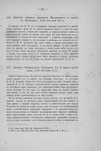 Донесение адмирала Апраксина Императрице с корабля «С. Екатерина», 1726 года июня 15 // Гл. морск. арх. (Дел. гр. Апраксина № 247).