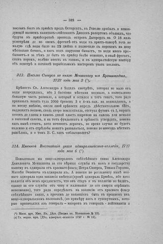 Письмо Сиверса к князю Меншикову из Кронштадта, 1727 года мая 2 // Моск. арх. Мин. Ин. Дел (Письма кн. Меншикова № 22).