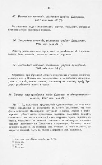 Записка вице-президента графа Кушелева в адмиралтейств-коллегию, 1801 года июля 25 // Арх. мор. мин. (Высоч. повелен. кн. № 78).