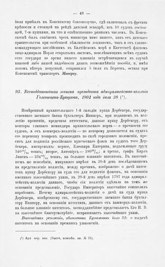 Всеподданнейшая записка президента адмиралтейств-коллегии Голенищева-Кутузова, 1801 года июля 28 // Арх. мор. мин. (Высоч. повелен. кн. № 78).