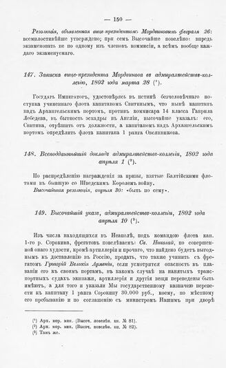 Высочайший указ, адмиралтейств-коллегии, 1802 года апреля 10 // Арх. мор. мин. (Высоч. повелен. кн. № 82).