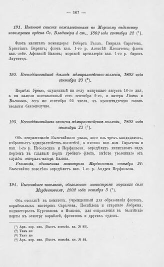 Всеподданнейший доклад адмиралтейств-коллегии, 1802 года сентября 23 // Арх. мор. мин. (Высоч. повелен. кн. № 83).