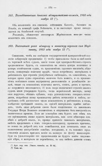 Всеподданнейшее донесение адмиралтейств-коллегии, 1802 года ноября 12 // Арх. мор. мин. (Высоч. повелен. кн. № 84).