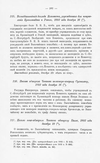 Всеподданнейший доклад Комитета, учрежденного для поправления Кронштадта и Ревеля, 1802 года декабря 16 // Арх. мор. мин. (Дел. адмиралтейского д-та 1802 г. № 212).