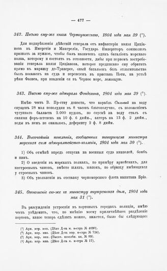 Письмо товарищу министра морских сил Чичагову князя Черторижского, 1804 года мая 29 // Арх. мор. мин. (Дело Д-та м. м-стра № 4090).