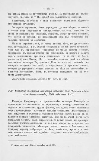 Сообщение товарища министра морских сил Чичагова адмиралтейств-коллегии, 1804 года июля 1 // Арх. мор. мин. (Высоч. повелен. кн. № 89).