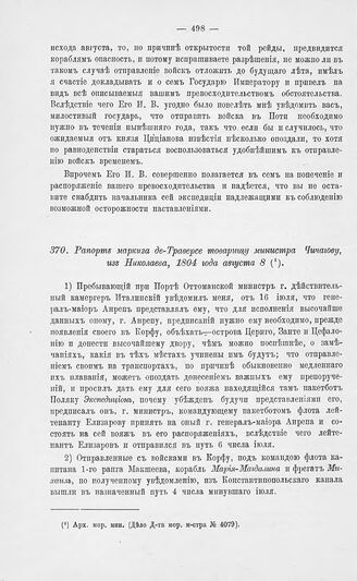 Рапорт маркиза де-Траверсе товарищу министра Чичагову, из Николаева, 1804 года августа 8 // Арх. мор. мин. (Дело Д-та мор. м-стра № 4079).