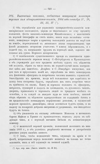 Высочайшие повеления, сообщенные товарищем министра морских сил адмиралтейств-коллегии, 1804 года сентября 17, 19, 22, 23, 27