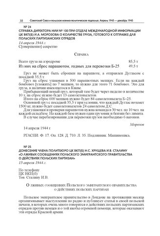 Донесение члена Политбюро ЦК ВКП(б) Н.С. Хрущева И.В. Сталину «О лживых сообщениях Польского эмигрантского правительства о действиях польских партизан». 15 апреля 1944 г.