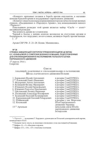 Справка заведующей сектором Управления кадров ЦК ВКП(б) К.С. Кузнецовой о советских военнослужащих, подготовленных для откомандирования в распоряжение Польского штаба партизанского движения. 17 апреля 1944 г.