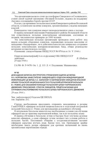 Докладная записка инструктора Управления кадров ЦК ВКП(б) Н.Л. Норовкова заместителю заведующего Отделом международной информации ЦК ВКП(б) Л.С. Баранову о направлении офицеров Красной армии польской национальности в польский штурмовой батальон в г. Ровно для оказания помощи Польскому штабу партизанского движения. Приложение: список офицеров, предполагаемых для отправки в распоряжение Польского штаба партизанского движения. 29 мая 1944 г. // РГАСПИ. Ф. 17. Оп. 128. Д. 710. Л. 70–71. Подлинники. Машинопись.