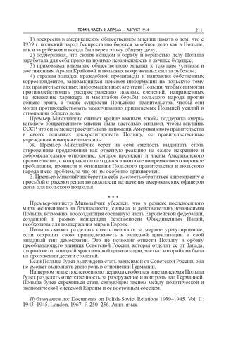 Доклад заместителя госсекретаря США Э. Стеттиниуса государственному секретарю США К. Хэллу о содержании беседы президента США Ф. Рузвельта с премьер-министром Польского правительства Ст. Миколайчиком о будущем послевоенной Польши и о позиции Польс...