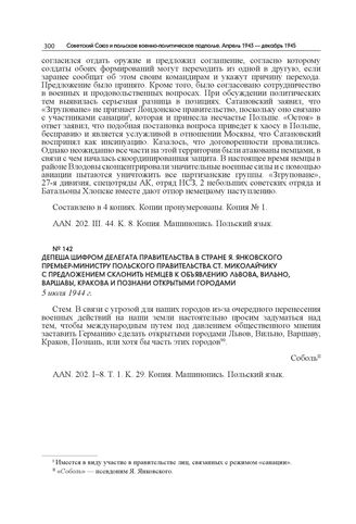 Советский Союз и польское военно-политическое подполье. Апрель 1943 г.-декабрь 1945 г. В 3 т. Т. 1. Апрель 1943 г.-август 1944 г. Ч. 2. Апрель-август 1944 г. — М.: РОССПЭН, 2019.