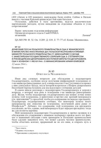 Донесение посла Польского правительства в США Я. Чехановского в Министерство иностранных дел Польской Республики и премьер-министру Польского правительства Ст. Миколайчику о беседе с заместителем государственного секретаря США Э. Стеттиниусом и руководителем департамента Восточной Европы Госдепартамента США Ч. Боленом 11 июля 1944 г. о финансировании Армии Крайовой. 12 июля 1944 г.