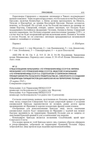 Спецсообщение начальника 1-го Управления НКВД СССР П.М. Фитина начальнику 2-го Управления НКВД СССР П.В. Федотову и начальнику 4-го Управления НКВД СССР П.А. Судоплатову о секретном приказе премьер-министра Польского правительства Вл. Сикорского о...