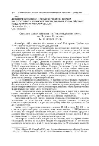 Донесение командира 1-й Польской пехотной дивизии им. Т. Костюшко З. Берлинга об участии дивизии в боевых действиях под д. Ленино Могилевской области. 18 октября 1943 г.