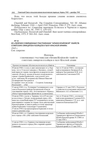 Из «Перечня совершенных участниками “Армии Крайовой” убийств советских офицеров и бойцов в тылу Красной армии». 1945 г. // ГА РФ. Ф. Р-9478. Оп. 1. Д. 46. Л. 10–11. Заверенная копия. Машинопись.