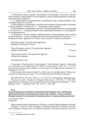 Из Вестника иностранной служебной информации ТАСС. Материалы дипломатического обозревателя агентства «Рейтер» Р. Нила о визите премьер-министра Польского правительства Ст. Миколайчика в Москву. 12 августа 1944 г.