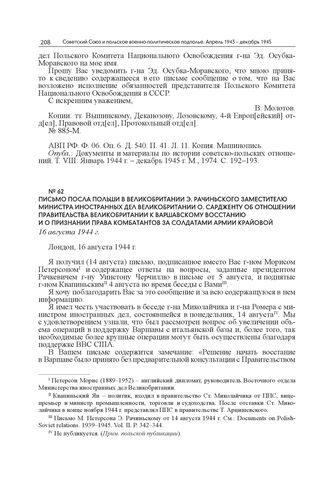 Documents on Polish-Soviet relations. 1939-1945. Vol. II: 1943-1945. London, 1967. Р. 347-349.