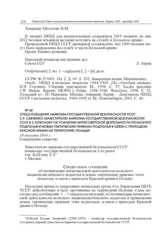 Советский Союз и польское военно-политическое подполье. Апрель 1943 г.-декабрь 1945 г. В 3 т. Т. 2. Ч. 2. Июль-ноябрь 1944 г. Кн. 1. — М.: РОССПЭН, 2022.