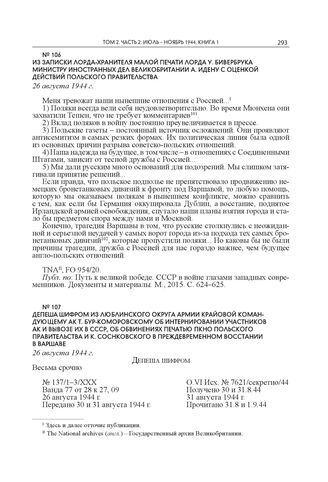 Советский Союз и польское военно-политическое подполье. Апрель 1943 г.-декабрь 1945 г. В 3 т. Т. 2. Ч. 2. Июль-ноябрь 1944 г. Кн. 1. — М.: РОССПЭН, 2022.