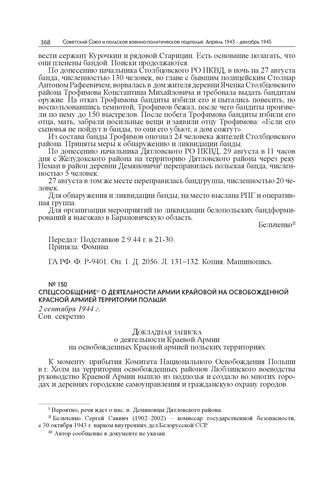 Спецсообщение о деятельности Армии Крайовой на освобожденной Красной армией территории Польши. 2 сентября 1944 г.