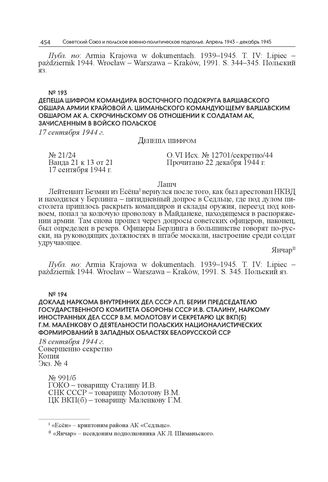 Советский Союз и польское военно-политическое подполье. Апрель 1943 г.-декабрь 1945 г. В 3 т. Т. 2. Ч. 2. Июль-ноябрь 1944 г. Кн. 1. — М.: РОССПЭН, 2022.