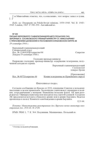 Советский Союз и польское военно-политическое подполье. Апрель 1943 г.-декабрь 1945 г. В 3 т. Т. 2. Ч. 2. Июль-ноябрь 1944 г. Кн. 1. — М.: РОССПЭН, 2022.