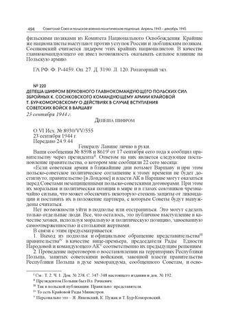 Советский Союз и польское военно-политическое подполье. Апрель 1943 г.-декабрь 1945 г. В 3 т. Т. 2. Ч. 2. Июль-ноябрь 1944 г. Кн. 1. — М.: РОССПЭН, 2022.