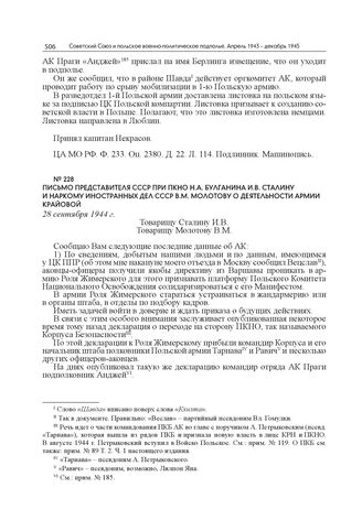 Советский Союз и польское военно-политическое подполье. Апрель 1943 г.-декабрь 1945 г. В 3 т. Т. 2. Ч. 2. Июль-ноябрь 1944 г. Кн. 1. — М.: РОССПЭН, 2022.