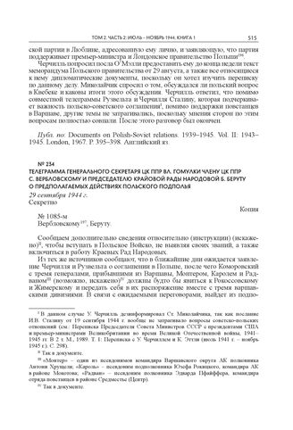 Советский Союз и польское военно-политическое подполье. Апрель 1943 г.-декабрь 1945 г. В 3 т. Т. 2. Ч. 2. Июль-ноябрь 1944 г. Кн. 1. — М.: РОССПЭН, 2022.