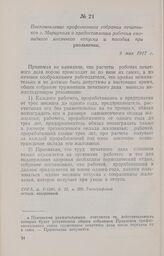 Постановление профсоюзного собрания печатников г. Мариуполя о предоставлении рабочим ежегодного месячного отпуска и пособия при увольнении. 9 мая 1917 г.