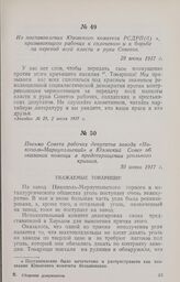 Из постановления Юзовского комитета РСДРП(б), призывающего рабочих к сплочению и к борьбе за переход всей власти в руки Советов. 29 июня 1917 г.