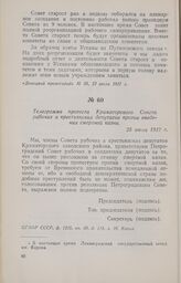 Телеграмма протеста Краматорского Совета рабочих и крестьянских депутатов против введения смертной казни. 25 июля 1917 г.