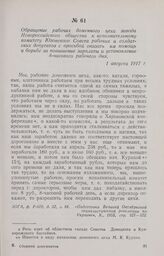 Сообщение правления Дружковского союза «Металлист» Харьковскому союзу «Металлист» о решении рабочих дружковских заводов оказывать помощь бастующим рабочим харьковских предприятий. 31 августа 1917 г.