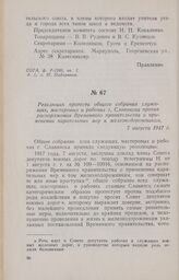 Резолюция протеста общего собрания служащих, мастеровых и рабочих г. Славянска против распоряжения Временного правительства о применении карательных мер к железнодорожникам. 7 августа 1917 г.
