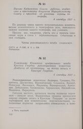 Телеграмма Юзовского центрального штаба Красной Гвардии революционным комитетам Донбасса об организации на местах записи в Красную Гвардию. 6 сентября 1917 г.