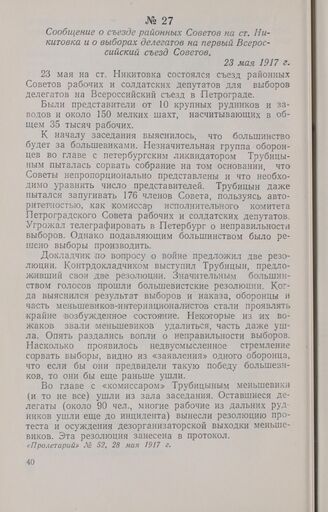 Сообщение о съезде районных Советов на ст. Никитовка и о выборах делегатов на первый Всероссийский съезд Советов. 23 мая 1917 г. // «Пролетарий» № 52, 28 мая 1917 г.