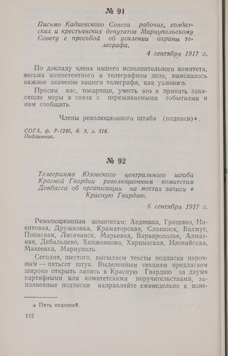 Письмо Кадиевского Совета рабочих, солдатских и крестьянских депутатов Мариупольскому Совету с просьбой об усилении охраны телеграфа. 4 сентября 1917 г.