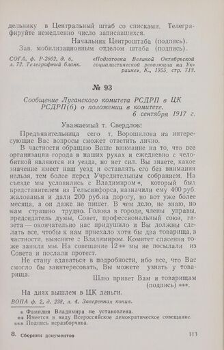 Сообщение Луганского комитета РСДРП в ЦК РСДРП(б) о положении в комитете. 6 сентября 1917 г.