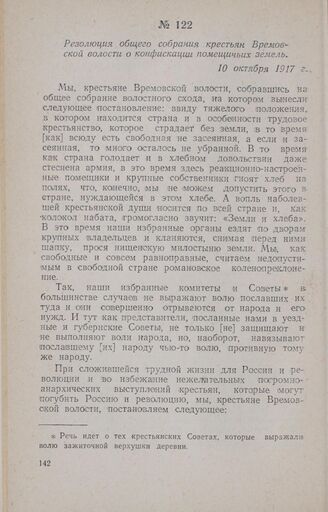 Резолюция общего собрания крестьян Времовской волости о конфискации помещичьих земель. 10 октября 1917 г.