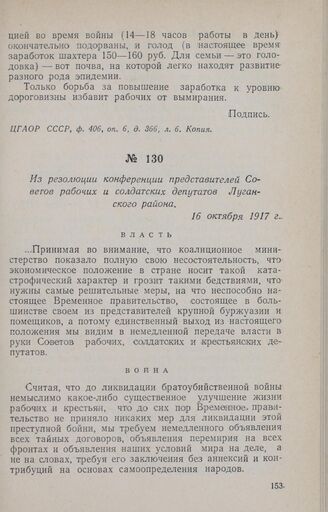 Из резолюции конференции представителей Советов рабочих и солдатских депутатов Луганского района. 16 октября 1917 г.