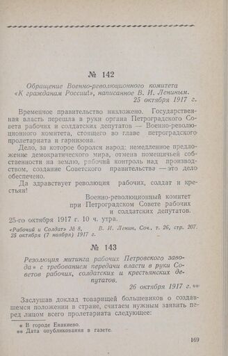 Резолюция митинга рабочих Петровского завода с требованием передачи власти в руки Советов рабочих, солдатских и крестьянских депутатов. 26 октября 1917 г. // «Звезда» № 121, 26 октября 1917 г.